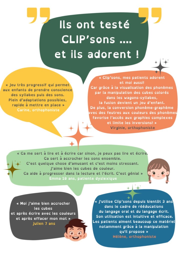 Retrouvez ici des témoignages de patients et de collègues qui utilisent CLIP'SONS au gré des séances d'orthophonie.
